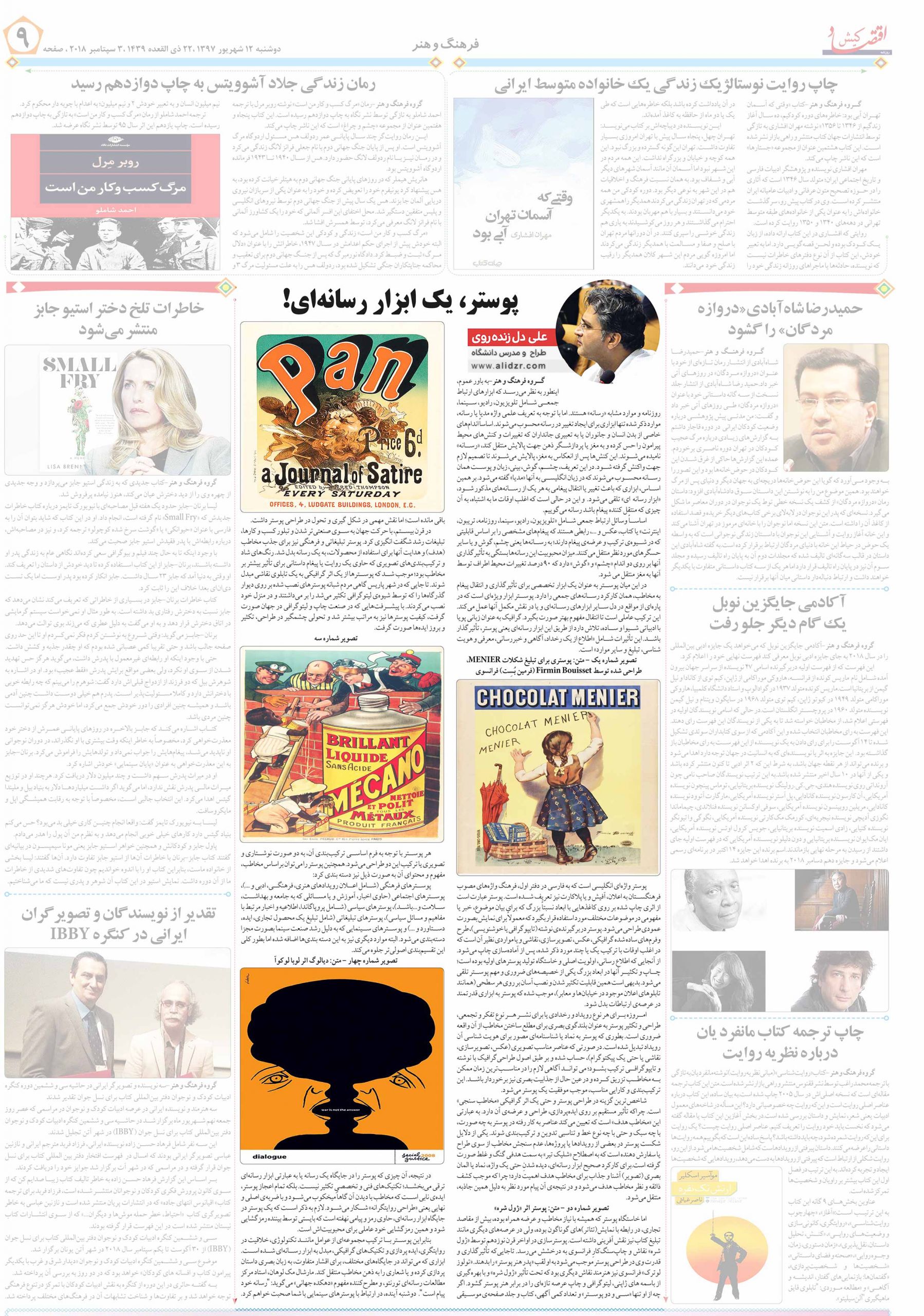 پوستر، یک ابزار رسانهای این مقاله در روزنامه اقتصاد کیش و در تاریخ دوشنبه ۱۲شهریور ماه 1397 به قلم علی دلزندهروی منتشر شده است This article was published in Kish Eghtesad newspaper on Monday, September 3, 2018 by Ali Delzendehrooy